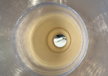 複数の突起が並んだ⾷品トレイ。⾷品を突起の先端で⽀え、油を分離する構造です。